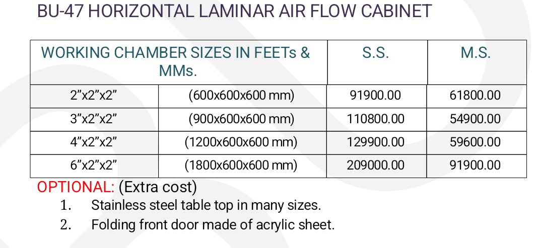 BU-47 LAMINAR AIR FLOW CABINETS: (Horizontal)