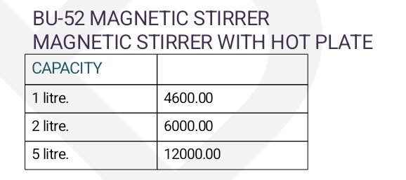The body is made of mild steel duly finished in stoving enamel and mounted with a stainless steel top which serves as a hot plate. Stirring and heating units are properly insulated. In model with heating system temp. is controlled by an energy regulator. An electronic speed controller is also provided. The equipment works on 220V AC 50Hz single phase. Magnetic stirrer with hot-plate