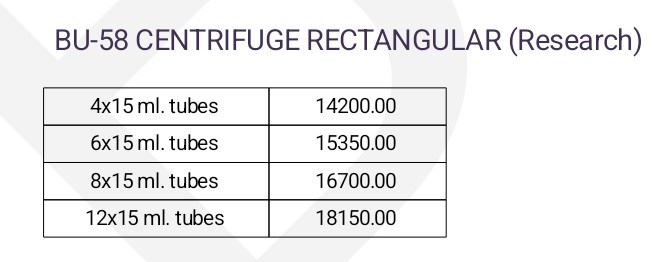 BU-58 CENTRIFUGE RECTANGULAR: (Research)