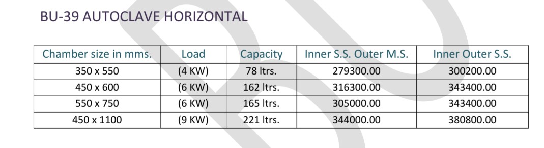 Specifications as in vertical model but presented in a horizontal position and without steam jacket. The outer body