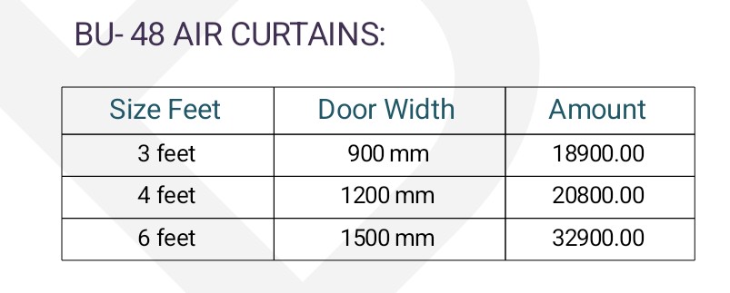 Invisible air door keeps interior of clean room dust free, stops entry of insects, serves as temperature barrier and helps in insolating heat, cooling and humidity. Fabricated out of mild steel sheet. Balance blowers are mounted on strong inside frame. Exterior finished in enamel or hammertone paint. Wall or roof mounting are provided. Models are